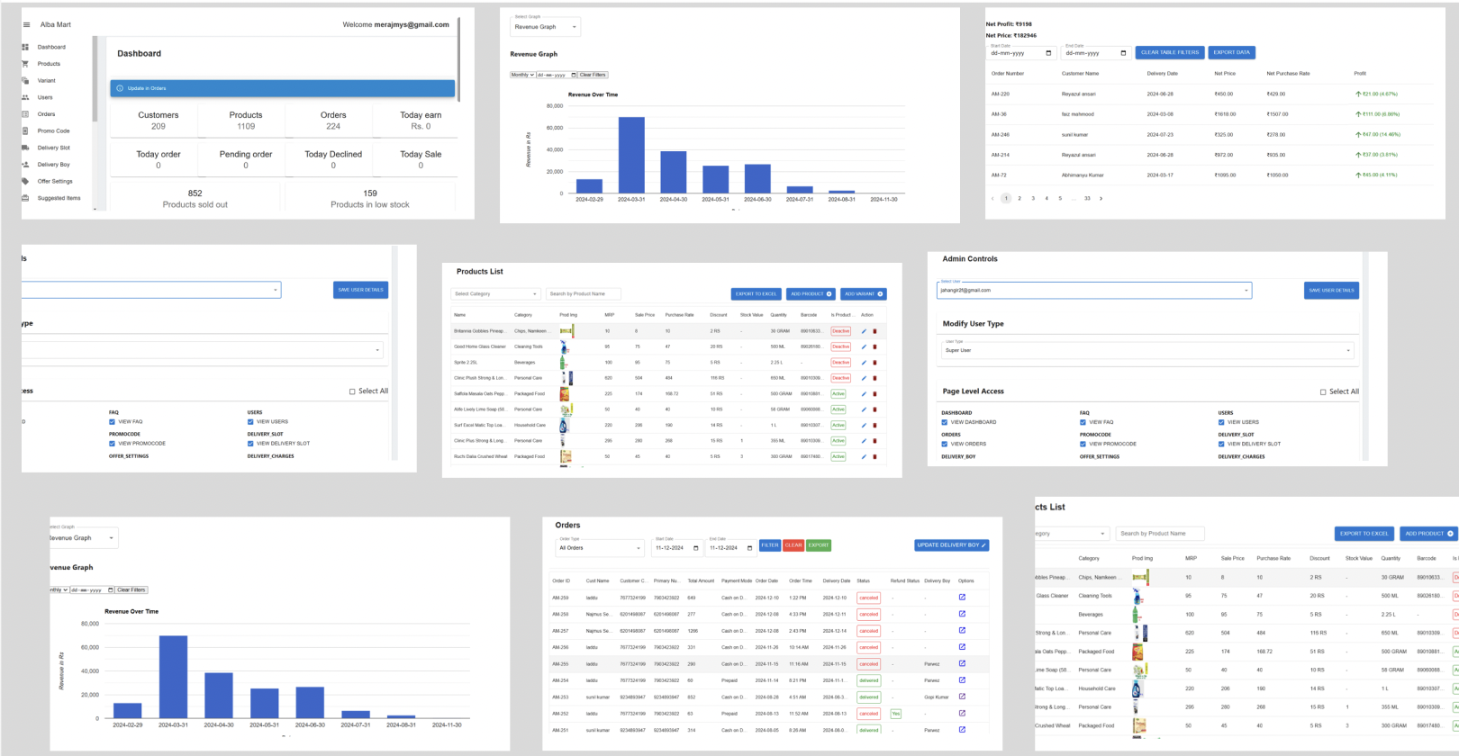 To efficiently manage Alba Mart’s growing customer base and streamline operations, they required a robust admin panel to oversee: